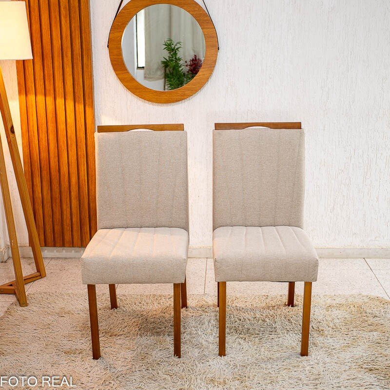 3{%%}Descrição{%%}2 Cadeiras Isabela Linho Bege 01 Madeira Maciça KM Decor – Entregue Montada