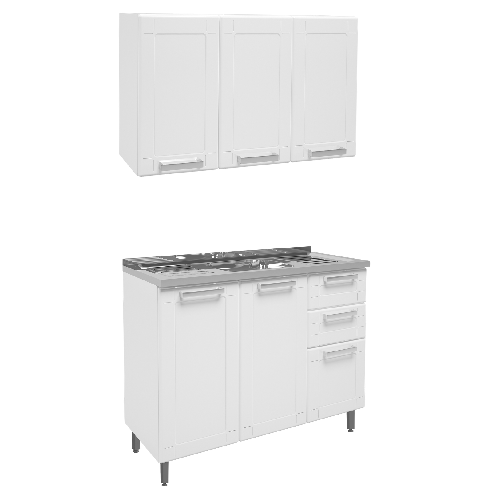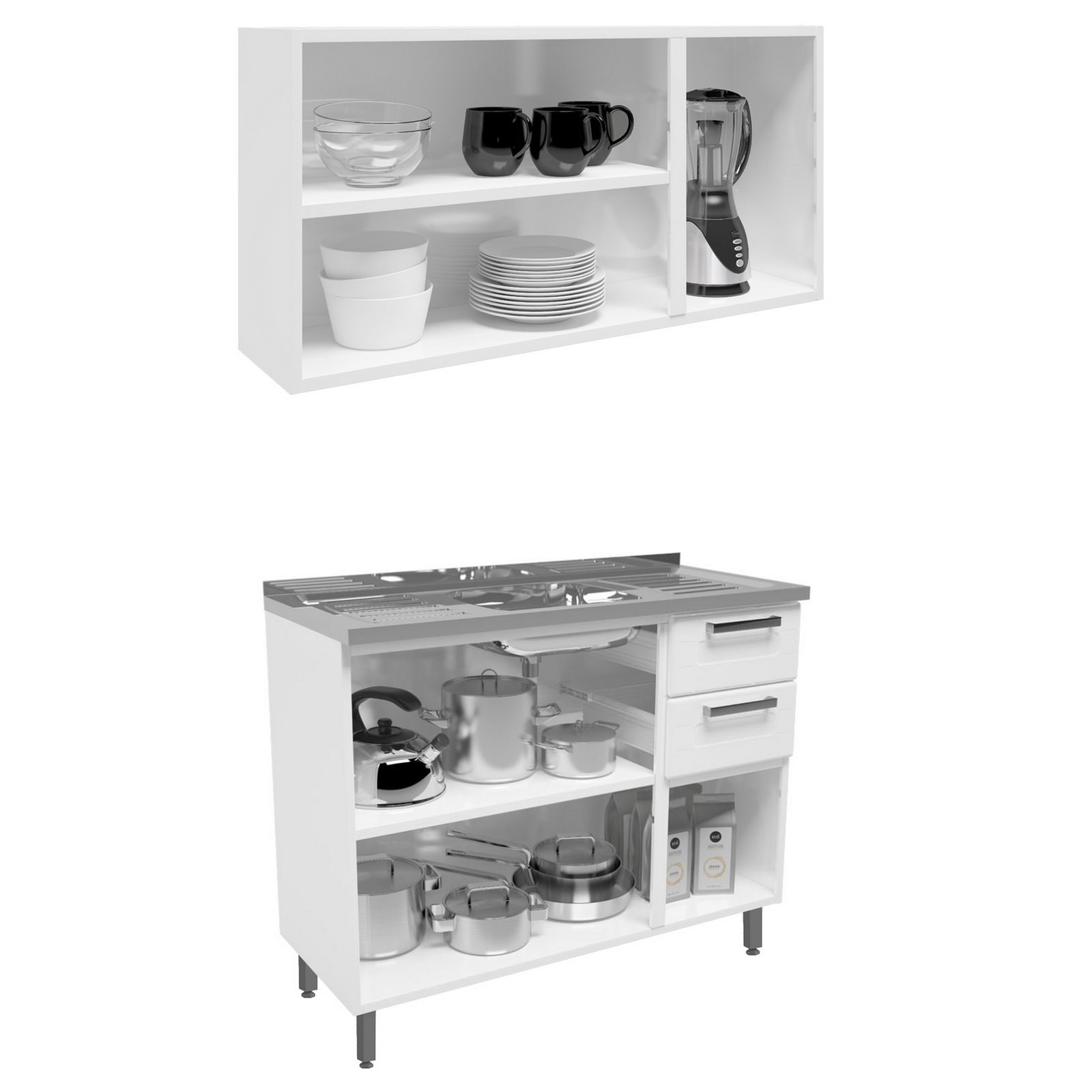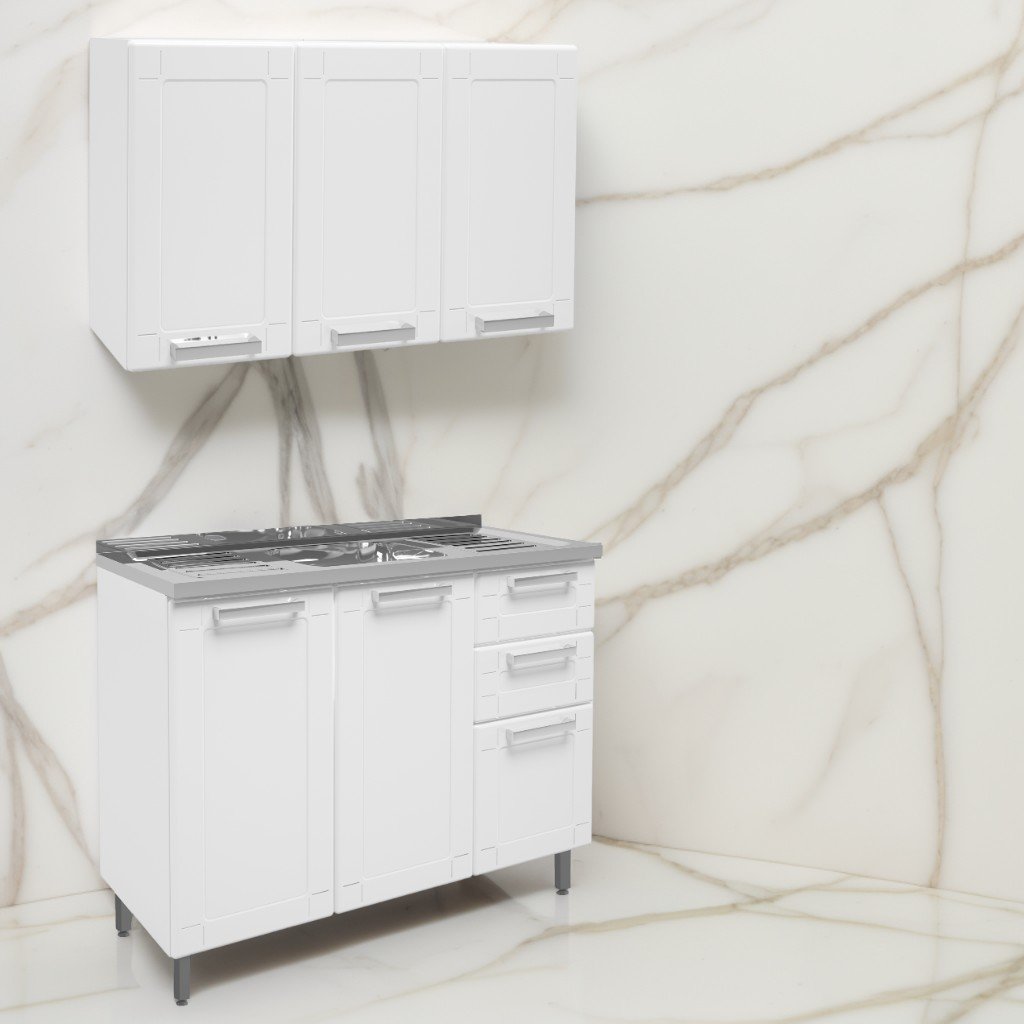 Armário Aéreo 3 Portas 6009590 + Balcão 2 Gavetas 6015590 Múltipla Branco – BERTOLINI