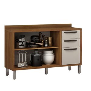 Balcão 2 Portas 3 Gavetas Letícia Carvalho/Off White – CHF
