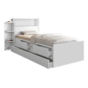 Cama Solteiro Baú Isa + Auxiliar Mili Branco – MADEC/VJ MÓVEIS