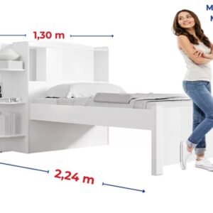 – Prateleira laterais que podem ser usadas para colocar livros, objetos e enfeites. Além disso pode ser montada em ambos os lados da cabeceira.