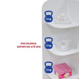 – Prateleira laterais que podem ser usadas para colocar livros, objetos e enfeites. Além disso pode ser montada em ambos os lados da cabeceira.