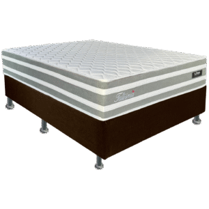 Colchão Casal Talismã D28 + Base Box Simples Corino Marrom – DESIGN COLCHÕES + ALTO NÍVEL CAMAS E COLCHÕES