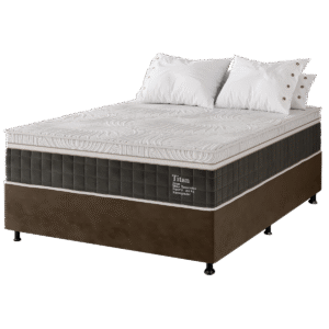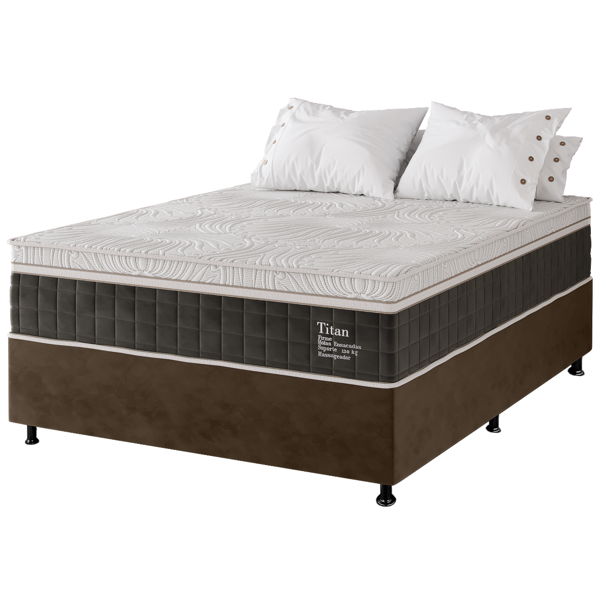 Colchão Casal Terapêutico Massageador Titan D28 + Base Box Simples Corino Marrom – VIERO MÓVEIS + BIOSTAR