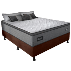 Colchão Casal Texas D28 + Base Box Simples Corino Marrom – GAZIN COLCHÕES + ALTO NÍVEL CAMAS E COLCHÕES