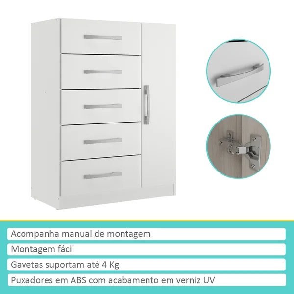 Cômoda 5 Gavetas com Sapateira Corais 11CO1523 Branco – RODIAL MÓVEIS