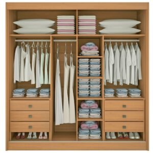 – Gavetas com puxadores em alumínio no guarda-roupa