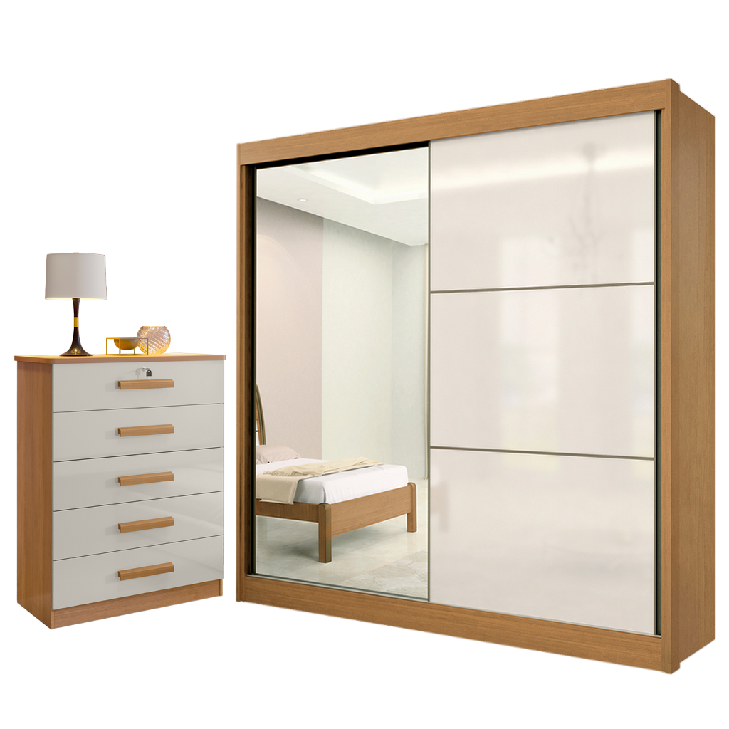 Guarda-Roupa 2 Portas Titanium + Cômoda Ipanema Cinamono/Off White/Cinamono – D’DORO MÓVEIS
