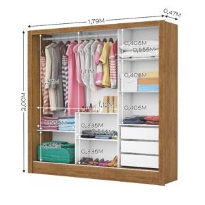 Guarda-Roupa 3 Portas Dubai/Santiago Plus(1 Porta espelhada) 1,79 m Cinamono/Branco – CARIOCA MÓVEIS