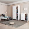 Guarda-Roupa 3 Portas Lívia + Cômoda 4 Gavetas com Sapateira Lívia + Mini Cama Juvenil Lívia Branco(Sem adesivo) – MADEC/VJ MÓVEIS