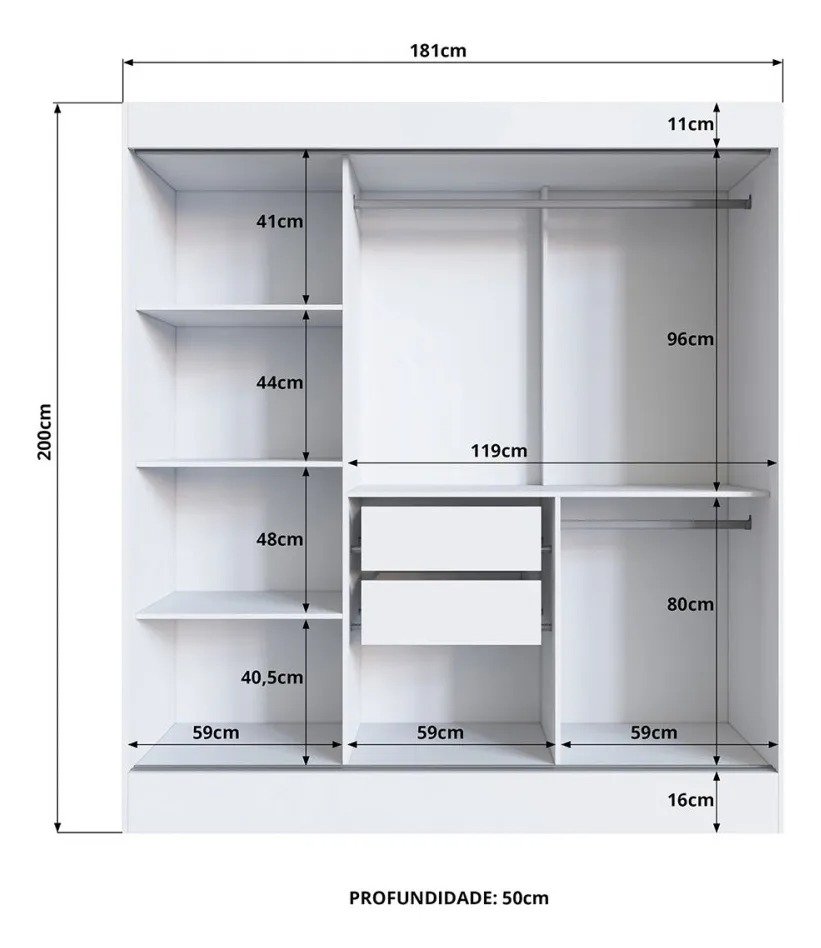 Guarda-Roupa 3 Portas Londres 69000 1,80 m Branco – DORIPEL