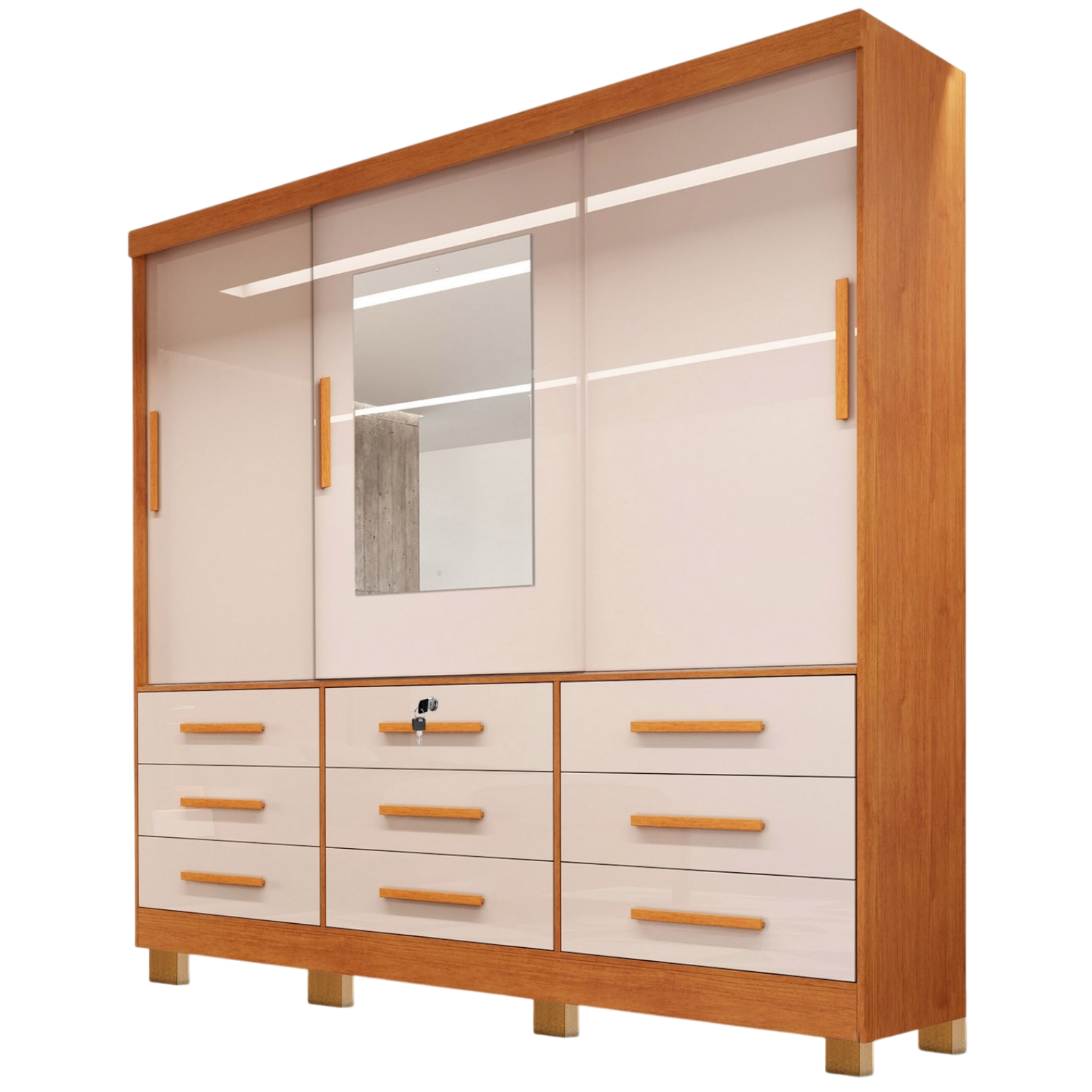 Guarda-Roupa 3 Portas(Com Pés)Athenas 1,80 m Nature/Off White – BIANCHI