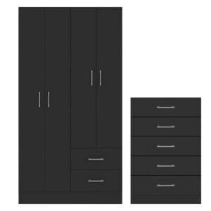 Guarda-Roupa 4 Portas Panamá 4002 + Cômoda 5 Gavetas Aruba Preto – FELLICCI