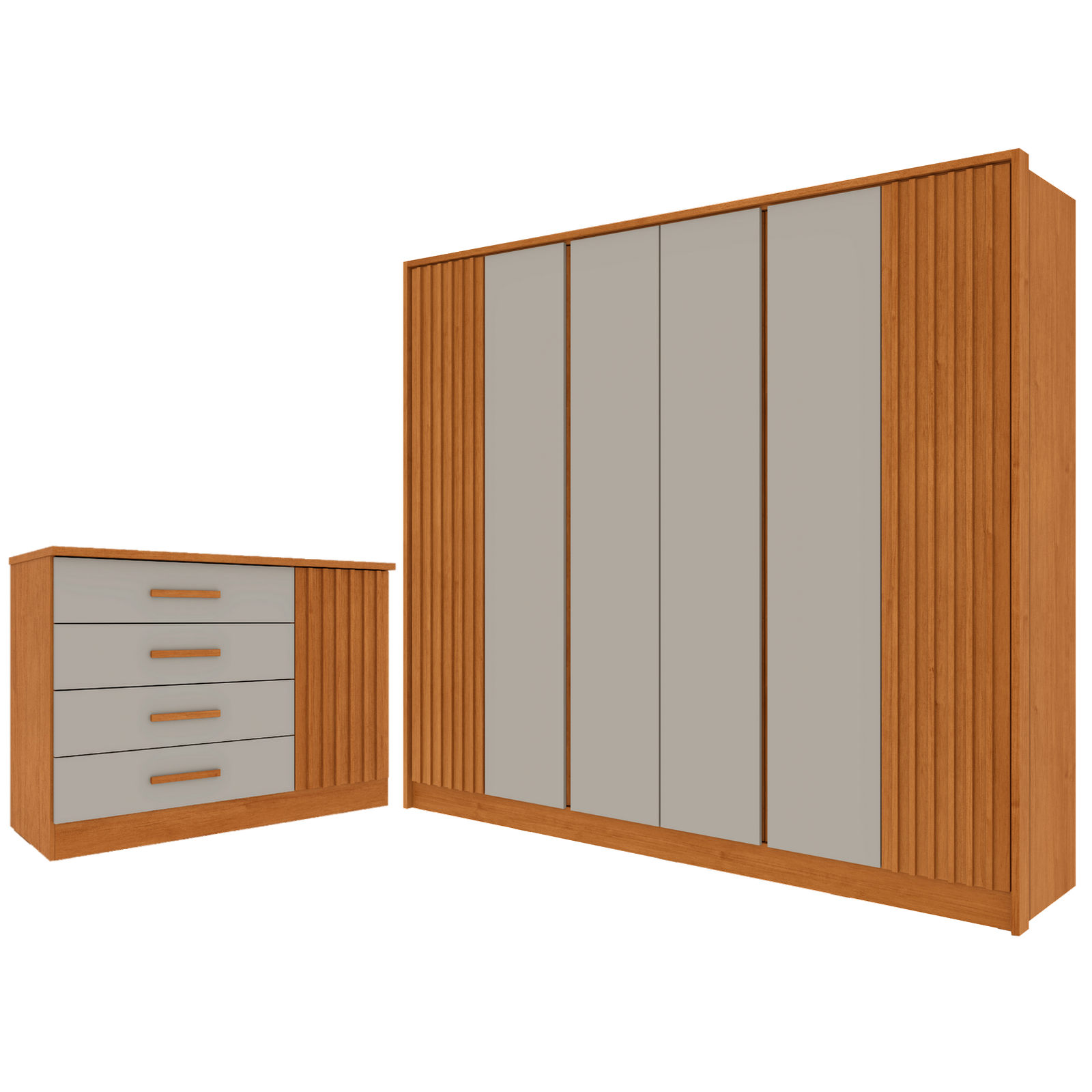 Guarda-Roupa 6 Portas + Cômoda Barcelona Ripado Cinamono/Off White – TCIL