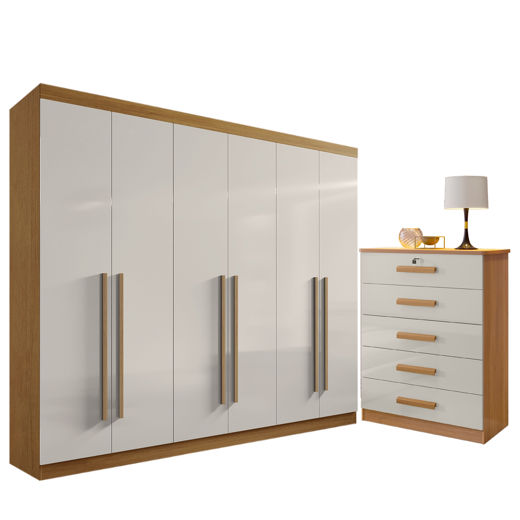 Guarda-Roupa 6 Portas Da Vinci + Cômoda Ipanema Cinamono/Off White – D’DORO MÓVEIS