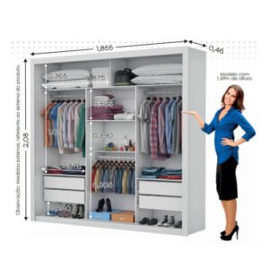 Guarda-Roupa Veneza/Clara/Berlim Premium(3 Portas espelhadas) 1,855 m Cinamono/Branco – CARIOCA MÓVEIS