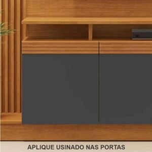 3{%%}Descrição#VÍDEO{%%}Home Absoluto Larg. 2.00m Cinamomo/Grafite Ripado C/ Led para TV até 65″ – JCM