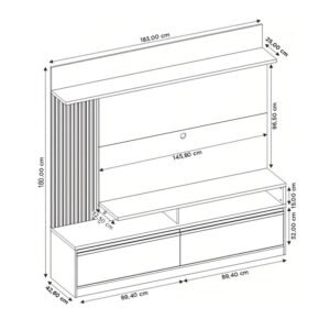 3{%%}Descrição{%%}Home NT 1295 Larg. 1.83m Freijó/Off C/ Detalhe Ripado para TV até 60″ – Notável