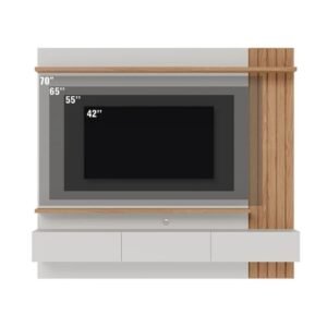 3{%%}Descrição{%%}Home Suspenso Juriti Larg. 1.80m Off White/Freijó para TV até 70″ – Colibri