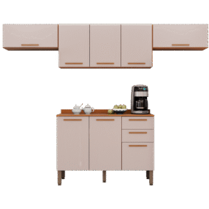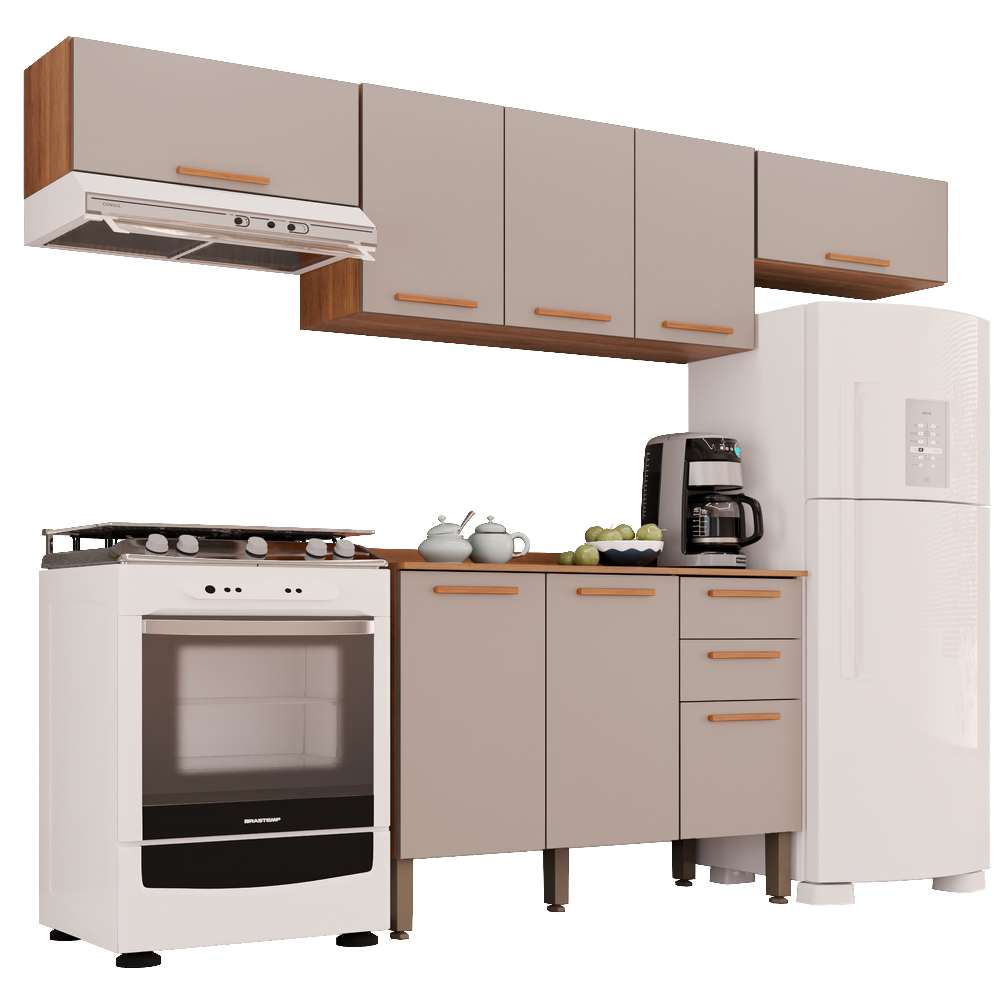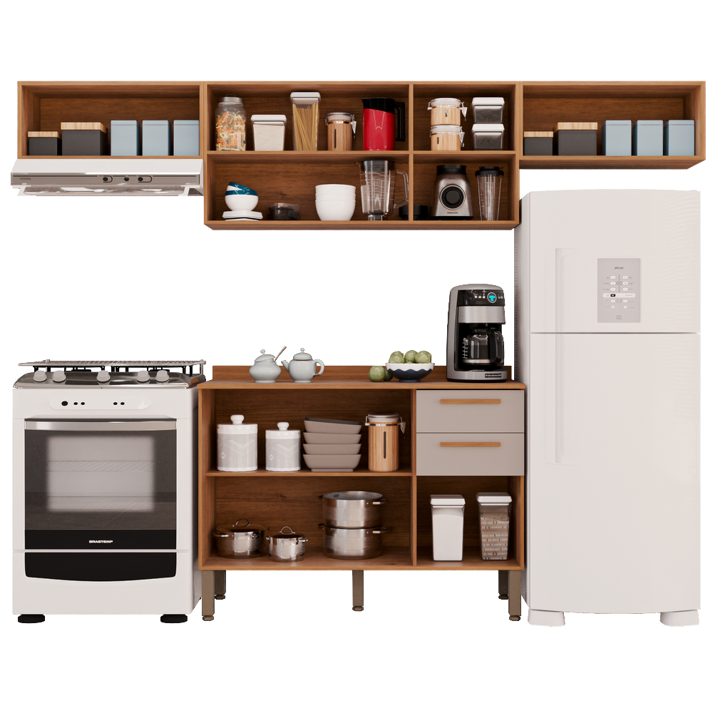 Kit 2 Armário Aéreo Geladeira + 1 Armário Aéreo Triplo + 1 Balcão New Valência Cinamomo/Off White – SALLÊTO