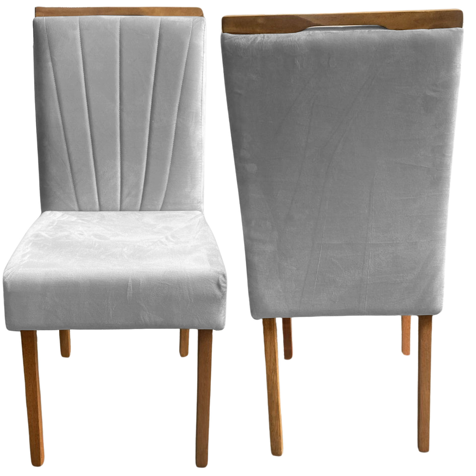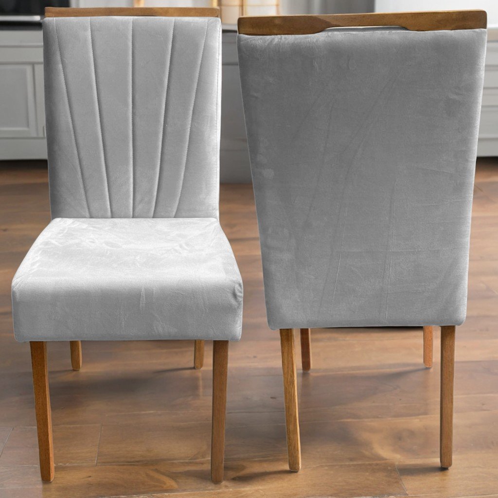 Kit 2 Cadeiras Patrícia 01 Imbuia Mel/Veludo Cinza Prata 148 – CARVALHO DECOR