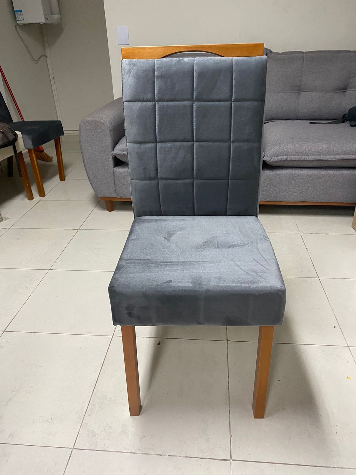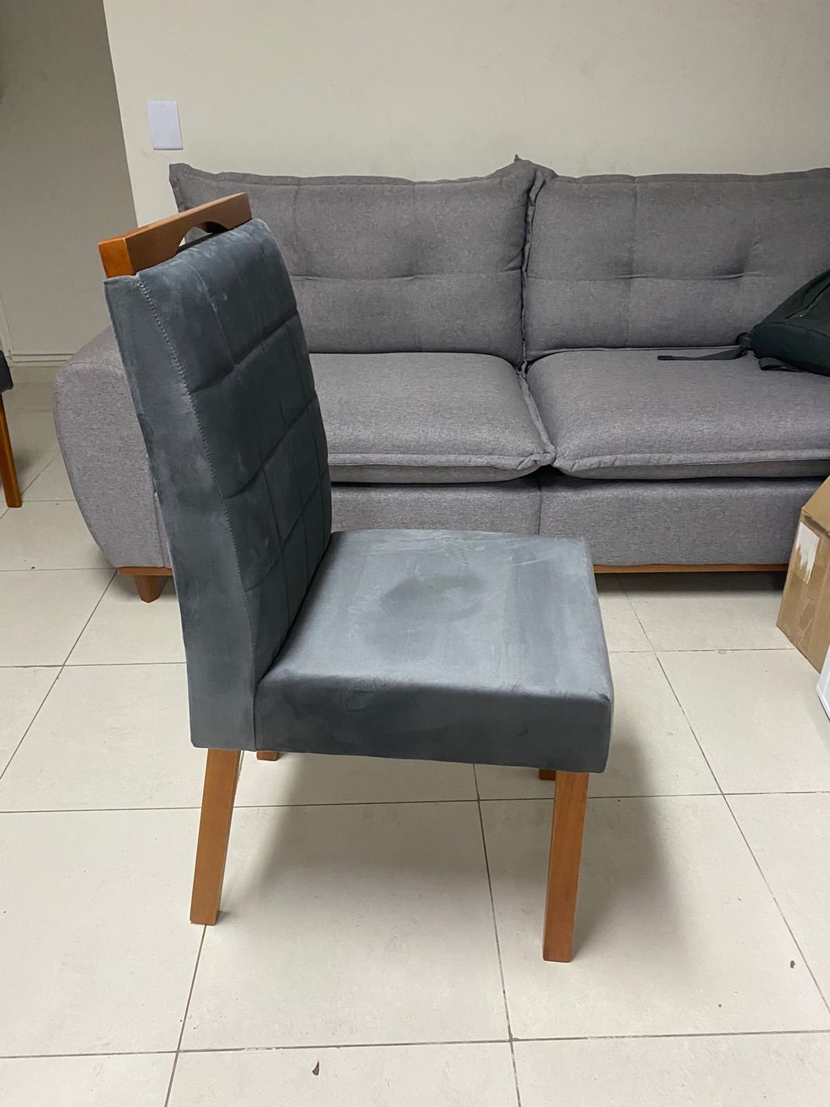– Assento em veludo grafite