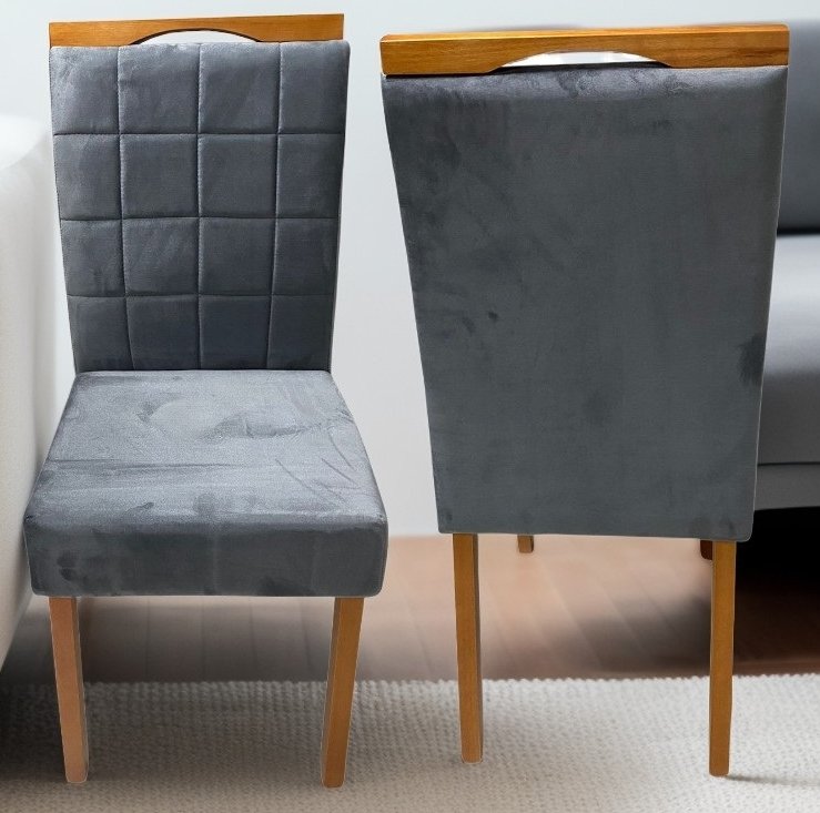 Kit 2 Cadeiras Roma Mel/Veludo Grafite – OURO DECOR