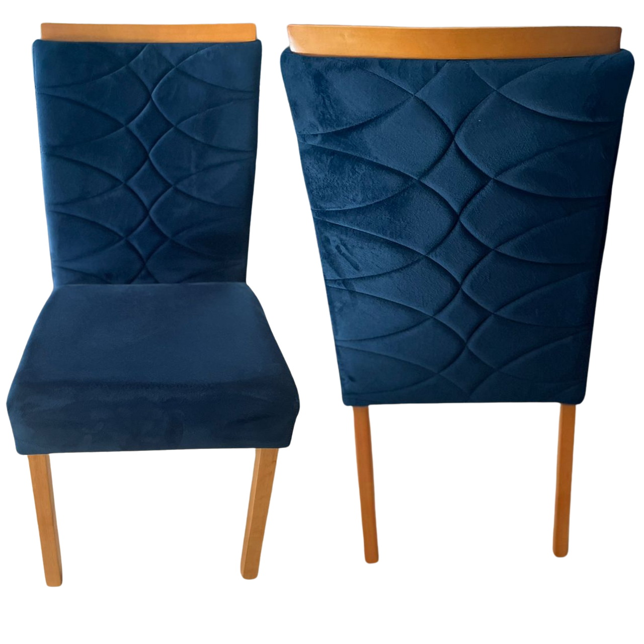 Kit 2 Cadeiras Safira Mel/Veludo Azul – WM DECOR