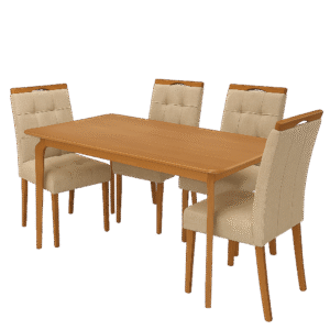 Mesa Alegra 120 Cinamomo com 4 Cadeiras Sophia Linho Bege 200 – JCM MOVELARIA + WM DECOR