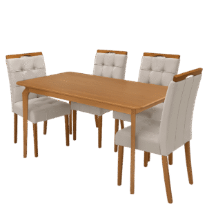 Mesa Alegra 120 Cinamomo com 4 Cadeiras Sophia Veludo Bege – JCM MOVELARIA + WM DECOR