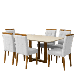 Mesa Atlas Mel/Off White Canto Copo 160×80 com 6 Cadeiras Sophia Linho Cinza Prata 206 – ART ASSENTOS + WM DECOR