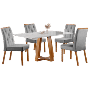 Mesa Ayres 120 Mel/Off White com 4 Cadeiras Yasmim Veludo Grafite – VIEIRA DECOR