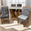 Mesa Classic 120 Cinamomo/Off White com 4 Cadeiras Sophia Mel/Veludo Bege – CEL MÓVEIS + WM DECOR