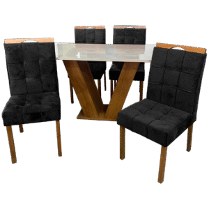 Mesa Classic 120 Cinamomo/Off White com 4 Cadeiras Sophia Mel/Veludo Preto – CEL MÓVEIS + WM DECOR