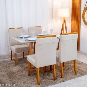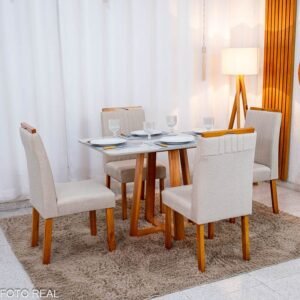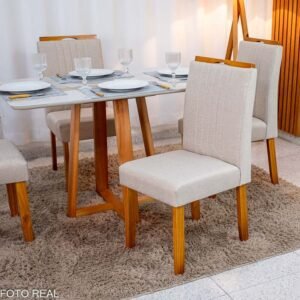 3{%%}Descrição{%%}Mesa de Jantar Bali 120×80 Vidro Off/Base Madeira + 4 Cad. Atlanta Linho Bege Cru Madeira Minas Plac – Entregue Montada