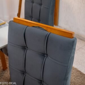 3{%%}Descrição{%%}Mesa de Jantar Bali 90×90 Vidro Off/Base Madeira + 4 Cad. Londres Veludo Chumbo Madeira Minas Plac – Entregue Montada