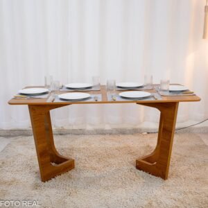 – Essa mesa tem o tamanho ideal para acomodar 6 cadeiras perfeitamente