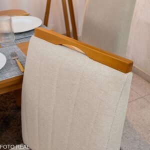 3{%%}Descrição{%%}Mesa de Jantar Londrina 180×90 Cinamomo Rufato + 6 Cad. Isabela Linho Bege 01 Madeira – KM Decor
