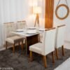3{%%}Descrição{%%}Mesa de Jantar Moscou 120×80 Vidro Off/Base Cinamomo + 4 Cad. Londres Veludo Chumbo Madeira Minas Plac – Entregue Montada