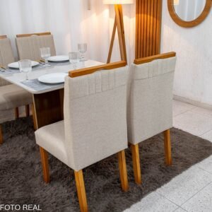 3{%%}Descrição{%%}Mesa de Jantar Moscou 90×90 Vidro Off/Base Cinamomo + 4 Cad. Atlanta Linho Bege Cru Madeira Minas Plac – Entregue Montada