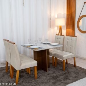 3{%%}Descrição{%%}Mesa de Jantar Moscou 90×90 Vidro Off/Base Cinamomo + 4 Cad. Londres Veludo Avelã Madeira Minas Plac – Entregue Montada