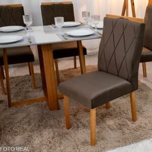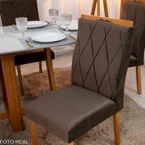 3{%%}Descrição#Como Montar{%%}Mesa de Jantar Pedro 160×80 Vidro Off/Base Madeira + 6 Cad. Lisboa Veludo Marrom 509 Madeira Art Assento – Entregue Montada