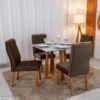 3{%%}Descrição#Como Montar{%%}Mesa de Jantar Pedro 90×90 Vidro Off/Base Madeira + 4 Cad. Lisboa Veludo Bege 512 Madeira Art Assento – Entregue Montada