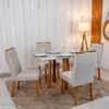 3{%%}Descrição#Como Montar{%%}Mesa de Jantar Pedro 90×90 Vidro Off/Base Madeira + 4 Cad. Lisboa Veludo Marrom 509 Madeira Art Assento – Entregue Montada