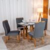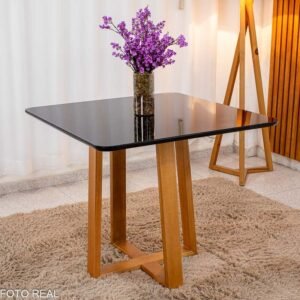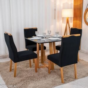 3{%%}Descrição#Como Montar{%%}Mesa de Jantar Pedro 90×90 Vidro Preto/Base Madeira + 4 Cad. Lisboa Veludo Preto 504 Madeira Art Assento – Entregue Montada