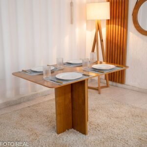 – Essa mesa tem o tamanho ideal para acomodar 4 cadeiras perfeitamente