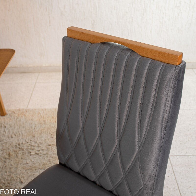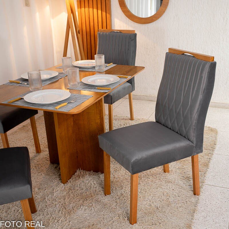 3{%%}Descrição{%%}Mesa de Jantar Salina 120×80 Tampo Londres Cinamomo 4 Cadeiras Genova Veludo Cinza 507 Madeira Maciça Art Assento