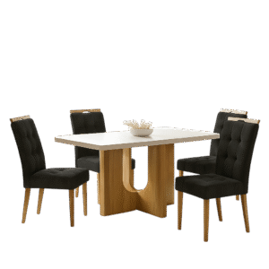 Mesa Dora 120 Cinamono/Off White com 4 Cadeiras Sophia Veludo Preto – VALDEMÓVEIS + WM DECOR
