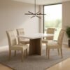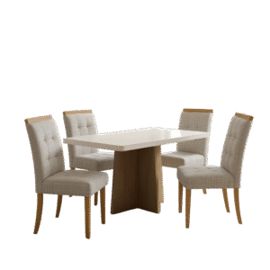 Mesa Jade 120 (Tampo 40 mm) Cinamomo/Off White com 4 Cadeiras Sophia Linho Cinza Prata 206 – VALDEMÓVEIS + WM DECOR