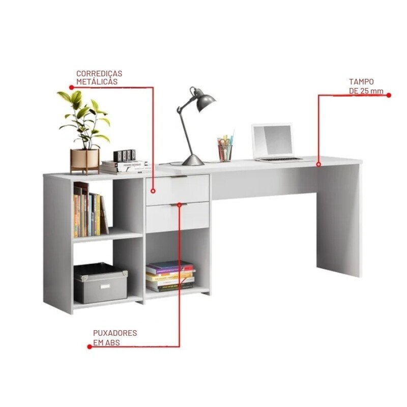 3{%%}Descrição#Shorts{%%}Mesa Office NT 2060 Larg. 2.00m Branco 2 Gavetas – Notável